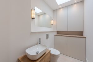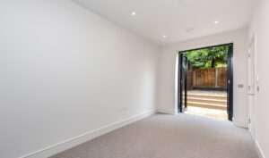 The two double bedrooms are thoughtfully placed at the front ends of the apartment for privacy and comfort, both benefiting from generous light-filled windows, with one enjoying direct access to the second private garden. A beautifully finished family bathroom with high-end fittings and a modern concrete-style aesthetic, along with a separate WC and utility room, completes this exceptional and unique home.
