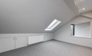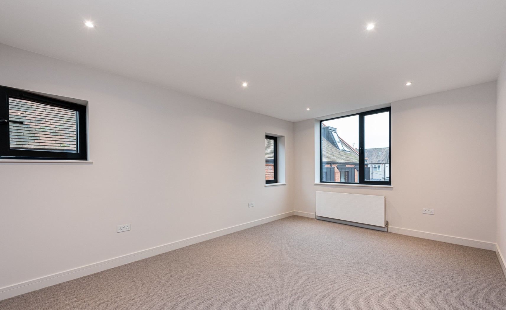 The property boasts an impressive façade, featuring elegant brickwork and distinctive dark-framed windows, some with stylish protruding detailing. There is also the added benefit of dedicated external storage, ideal for bikes and outdoor equipment.