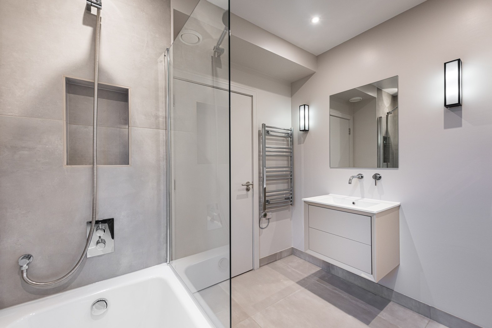 The private rear garden has been thoughtfully landscaped, with tiled space ideal for outdoor dining and low-maintenance artificial lawn beyond - creating an excellent setting for entertaining during the warmer months.